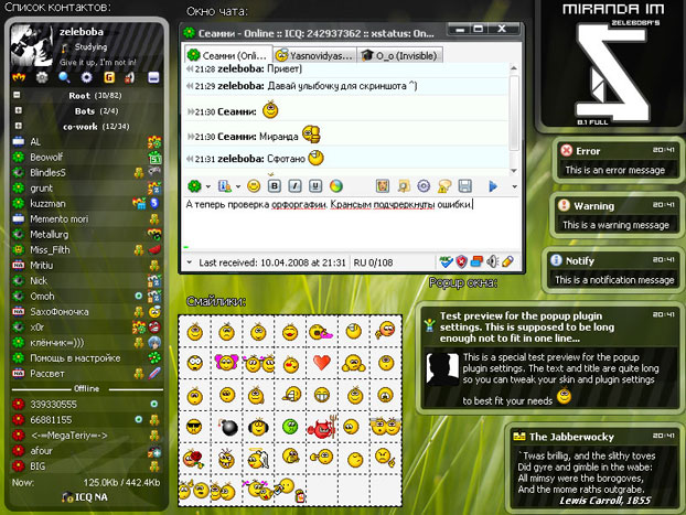 Скачать Miranda IM zeleboba pack 8.1 бесплатно для Windows без регистрации. Ключи и активация не требуются. На сайте представлена русская или английская версия программы Miranda IM zeleboba pack 8.1 не требующая серийник. Если программа условно-бесплатная, то она имеет демо режим для проверки её работы.